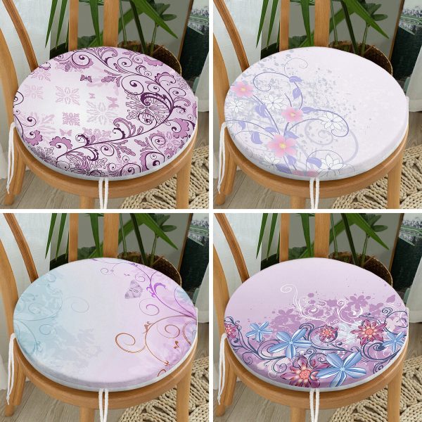 4’lü Sarmaşık Çiçekler Tasarımlı Yuvarlak Fermuarlı Sandalye Minderi Seti