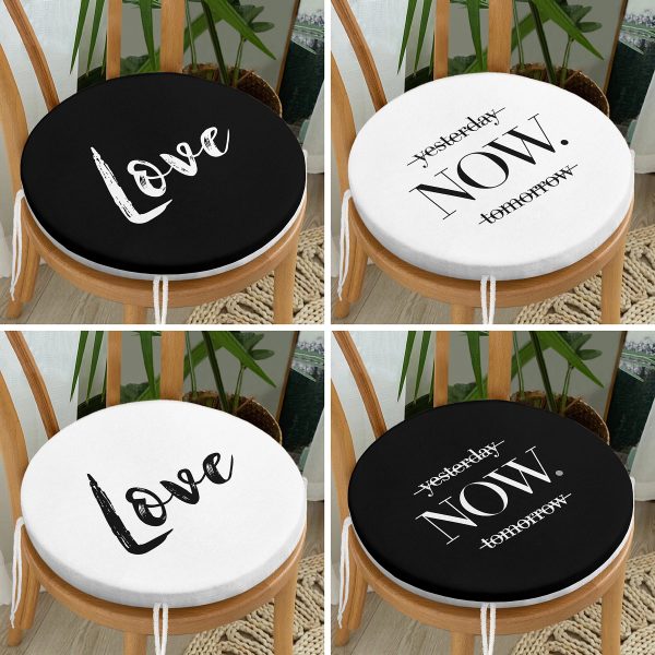 4’lü Yesterday Now Tomorrow & Love Yuvarlak Fermuarlı Sandalye Minderi Seti