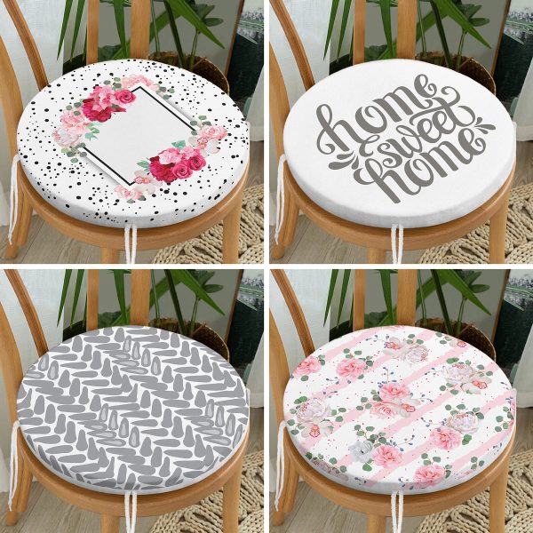 4’lü Çiçek & Şeker Tasarımlı Dijital Baskılı Modern Yuvarlak Fermuarlı Sandalye Minderi Seti