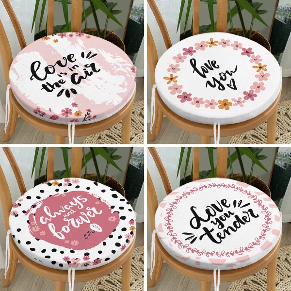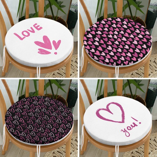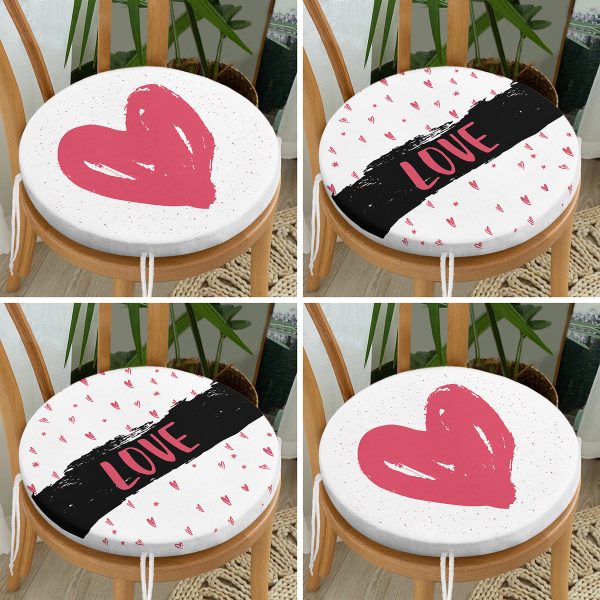 4’lü Sevgililer Günü Konseptli Özel Tasarım Modern Kombin Yuvarlak Fermuarlı Sandalye Minderi Seti