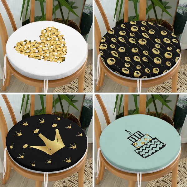 4’lü Altın Varaklı Doğum Günü Konseptli Dekoratif Yuvarlak Fermuarlı Sandalye Minderi Seti