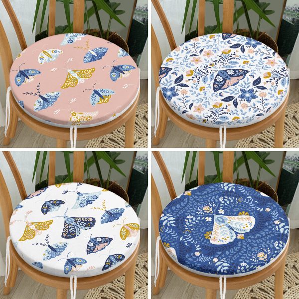 4’lü Kelebek Özel Tasarımlı Dijital Baskılı Modern Yuvarlak Fermuarlı Sandalye Minderi Seti