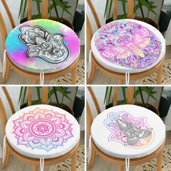 4’lü Özel Tasarım Fatma Ana Eli Desenli Yuvarlak Fermuarlı Sandalye Minderi Seti