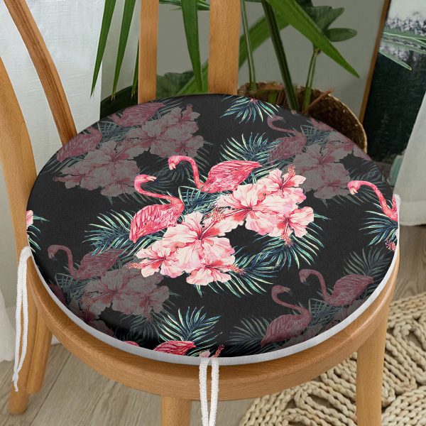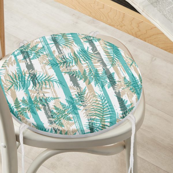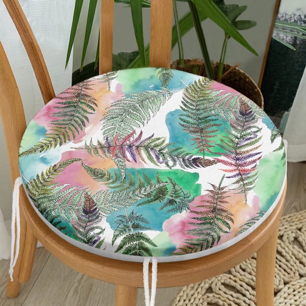Kurumuş Tropik Yaprak Tasarımlı 4 Yuvarlak Pofuduk Sandalye Minderi ve 1 Runner Seti