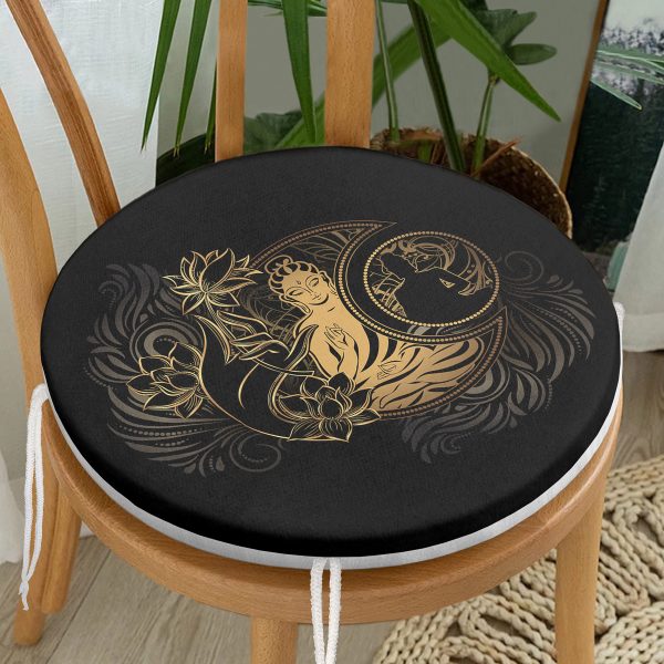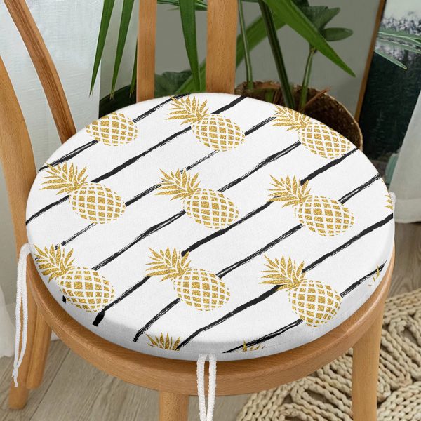 Gold Detaylı Yaprak & Geyik Tasarımlı 4 Yuvarlak Pofuduk Sandalye Minderi ve 1 Runner Seti