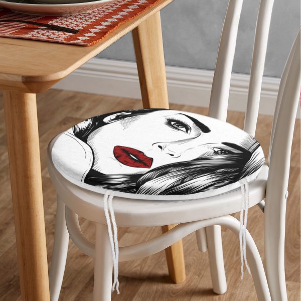 African Women Girl Motifli 4 Yuvarlak Pofuduk Sandalye Minderi ve 1 Runner Seti
