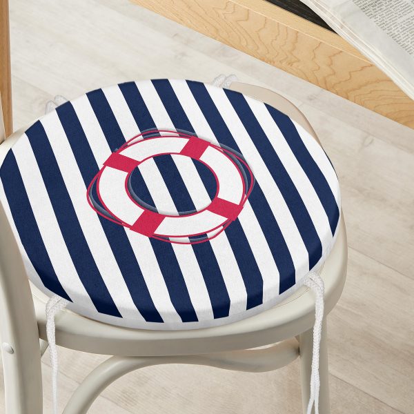 Lacivert Renkli Yılbaşı Temalı 4 Yuvarlak Pofuduk Sandalye Minderi ve 1 Runner Seti