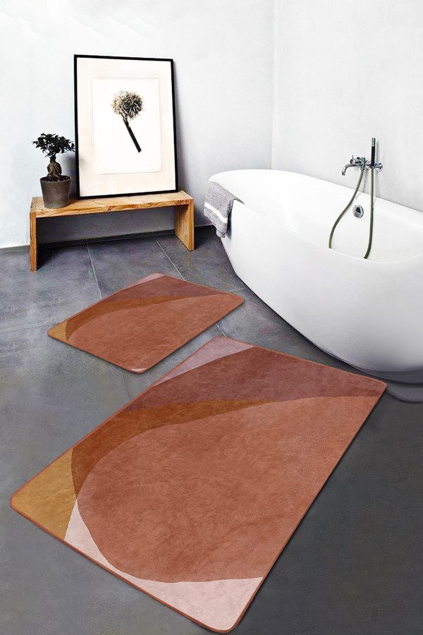 Kahverengi – Kiremit Zeminde Modern Sanat Motifli Tablo Desenli Bohem Modern Salon & Oturma Odası Dış Mekan & Outdoor Dijital Baskılı Makinede Yıkanabilir Kaymaz Taban Saçaklı Halı