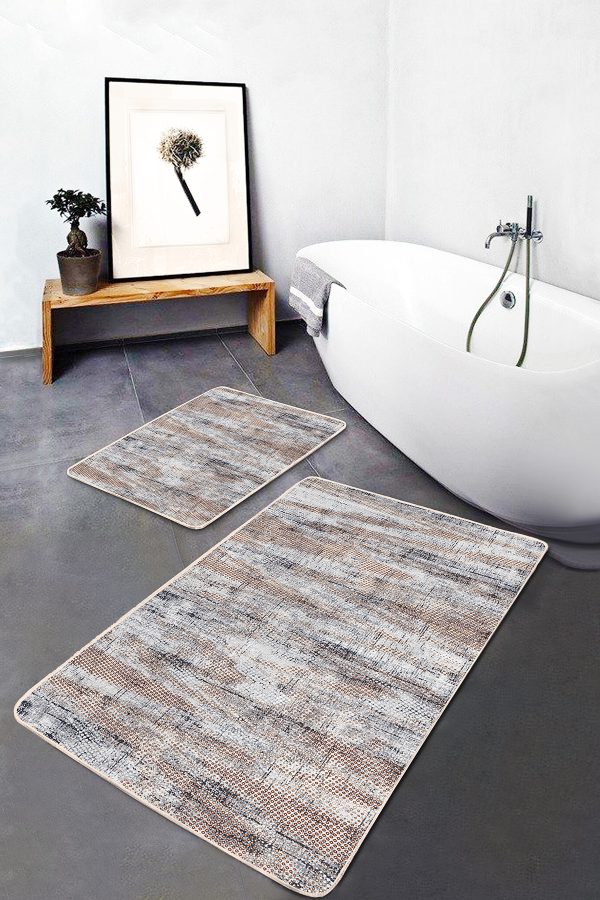 Füme – Ekru Zeminde Dokuma Motifli Eskitme Desenli Eskitme Motifli Modern Salon & Oturma Odası Mutfak Dijital Baskılı Makinede Yıkanabilir Kaymaz Taban Saçaklı Halı