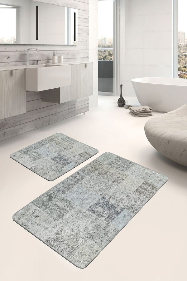 2’li Set Ekru Zeminde Antika Motifli Dokuma Halı Desenli Etnik Motifler Avangarde 2’li Banyo & Mutfak Paspas Takımı