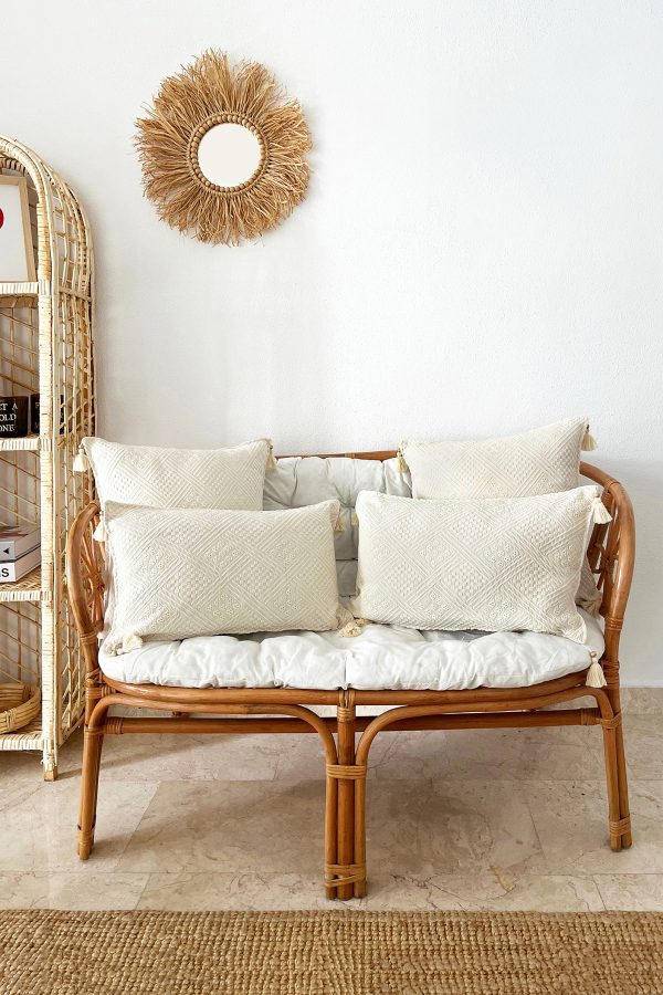 Realhomes 2’li Set Dikdörtgen Handmade Elişi Natural Buldan Bezi Otantik Organik Pamuklu Püsküllü Kırlent Kılıfı