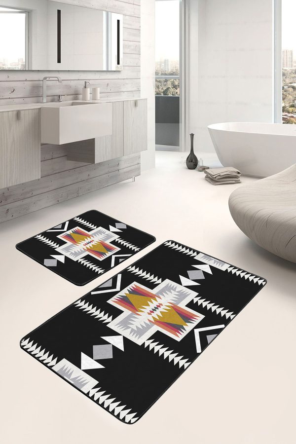 569,99 ₺2’li Set Siyah Zeminde Etnik Motifli Geleneksel Desenli Geometrik Etnik Motifler 2’li Banyo & Mutfak Paspas Takımı