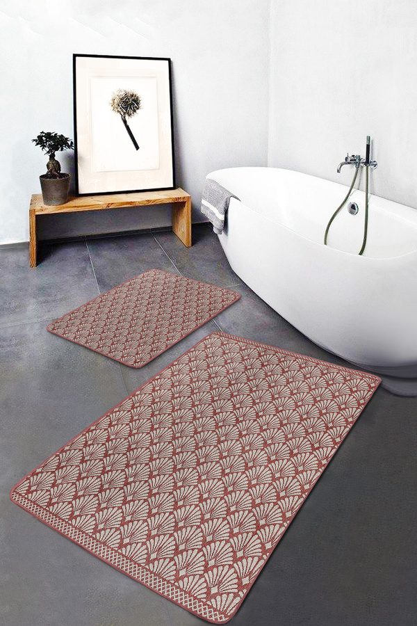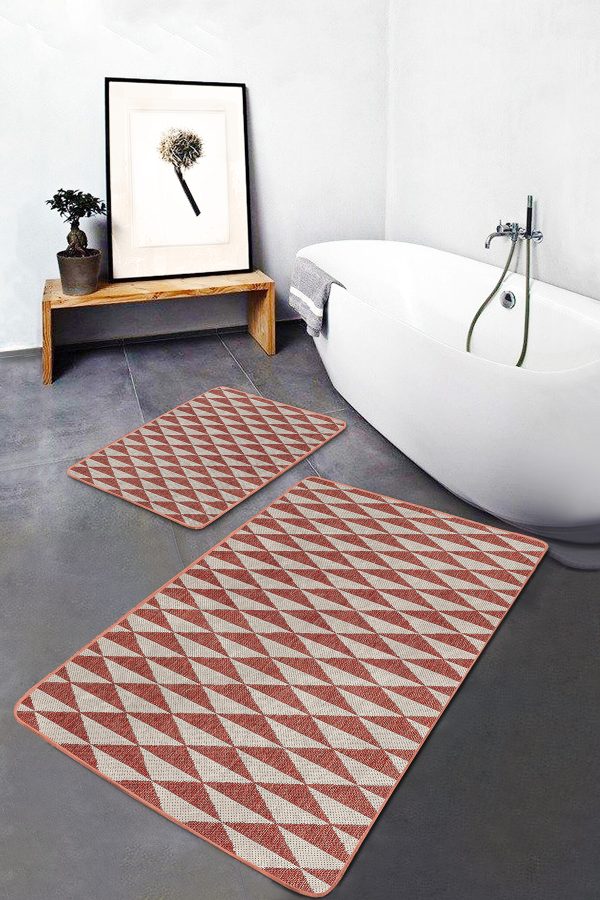 2’li Set Kiremit Zeminde Kilim Motifli Baklava Desenli Etnik Motifler Avangarde 2’li Banyo & Mutfak Paspas Takımı