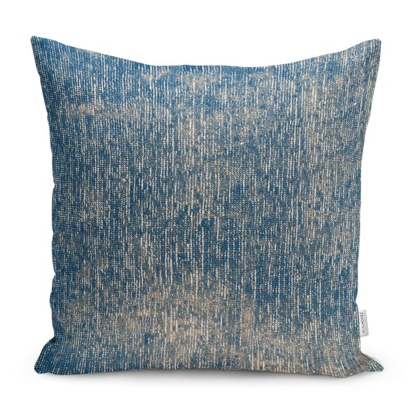 RealHomes Mavi Zeminde Örme Motifli Eskitme Desenli Dijital Baskılı Yastık Kırlent Kılıfı