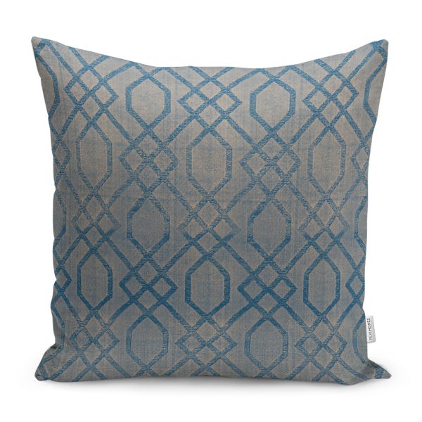 RealHomes Mavi Zeminde Kanvas Motifli Geometrik Desenli Dijital Baskılı Yastık Kırlent Kılıfı