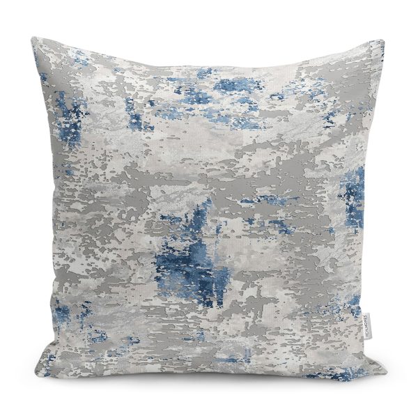 Realhomes Mavi Renkli Mermer Tasarımlı Suluboya Motifli Dekoratif Yastık Kırlent Kılıfı
