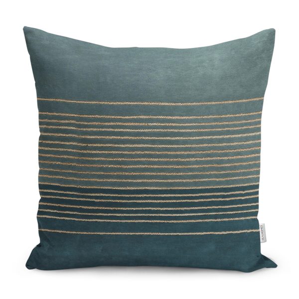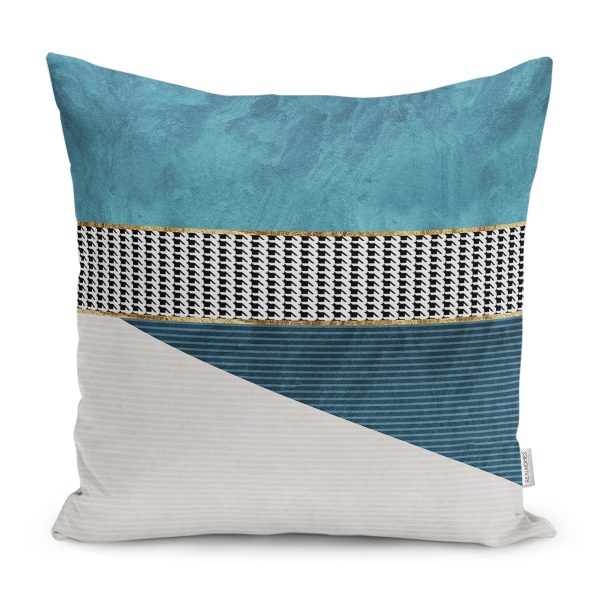 RealHomes Mavi Zeminde Geometrik Motifli Çizgili Desenli Dijital Baskılı Yastık Kırlent Kılıfı