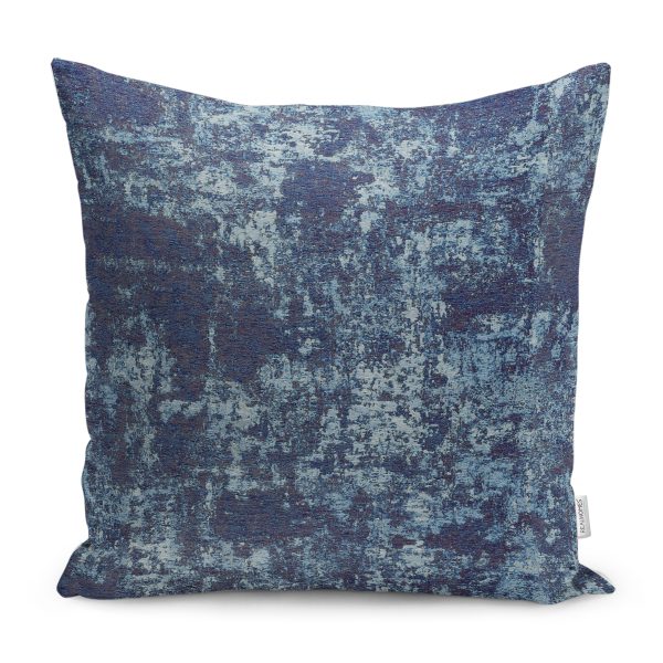 RealHomes Mavi Zeminde Eskitme Motifli Duvar Desenli Dijital Baskılı Yastık Kırlent Kılıfı