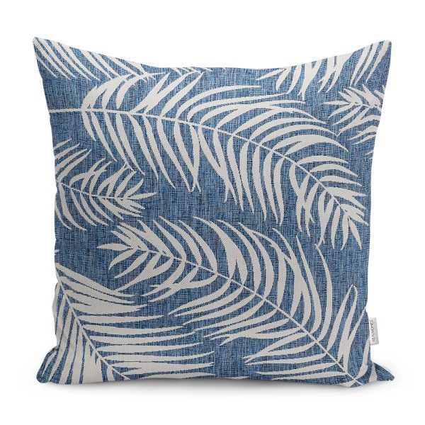 RealHomes Mavi Zeminde Örme Motifli Yaprak Desenli Dijital Baskılı Yastık Kırlent Kılıfı