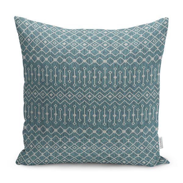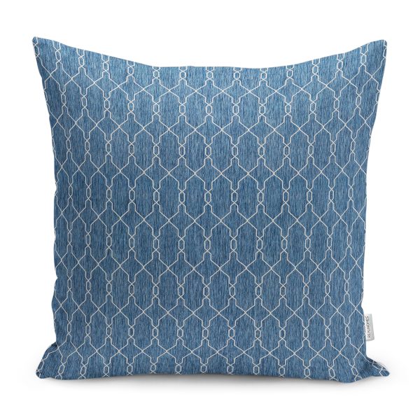 RealHomes Mavi Zeminde Geometrik Motifli Örgü Desenli Dijital Baskılı Yastık Kırlent Kılıfı