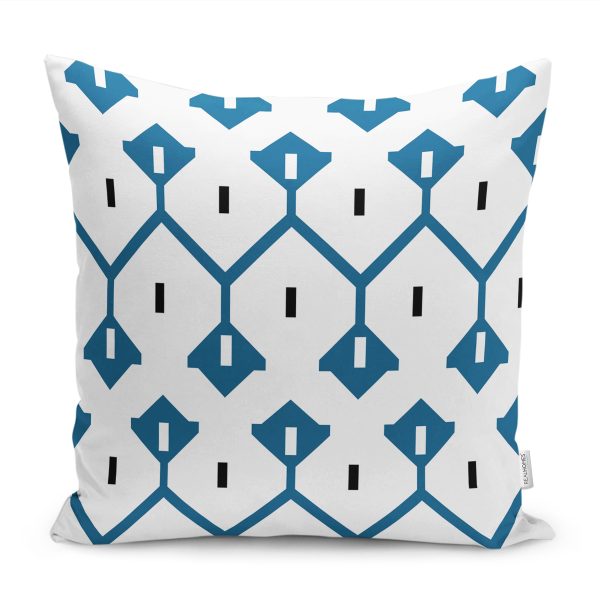 RealHomes Mavi Zeminde Kazayağı Motifli Geometrik Desenli Dijital Baskılı Yastık Kırlent Kılıfı