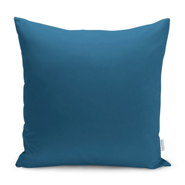 RealHomes Mavi Zeminde Düz Renk Motifli Mavi Desenli Dijital Baskılı Yastık Kırlent Kılıfı
