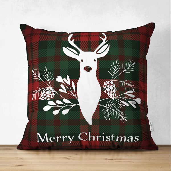 Ekose Zeminli Christmas Geyik Desenli Dekoratif Yer Minderi – 70 x 70 cm