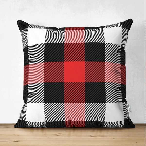 Siyah Kırmızı Beyaz Ekose Desenli Dekoratif Dikdörtgen Yastık Kırlent Kılıfı