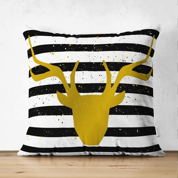 Çizgili Gold Geyik Desenli Modern Çift Taraflı Süet Yastık Kırlent Kılıfı