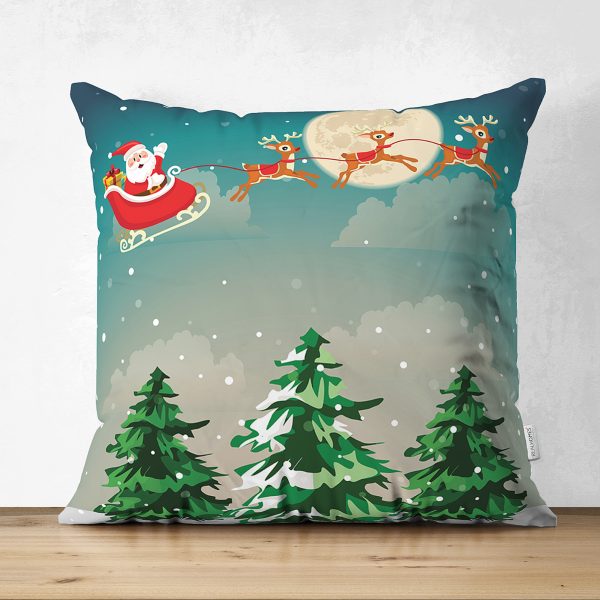 Çift Taraflı Christmas Temalı Dijital Baskılı Süet Yastık Kırlent Kılıfı