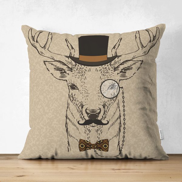 Çift Taraflı Geyik Desenli Dijital Baskılı Dekoratif Süet Yastık Kırlent Kılıfı