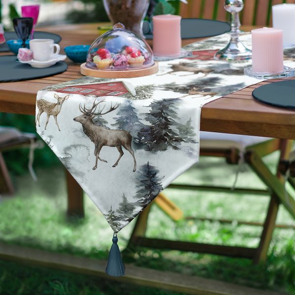 Yılbaşı Geyikleri Motifli Dijital Baskılı Leke Tutmaz Masa Örtüsü