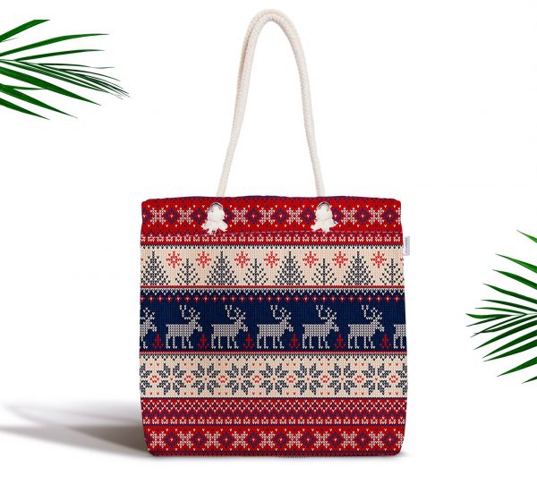 Yılbaşı Geyikleri Motifli Dijital Baskılı Fermuarlı Kumaş Çanta