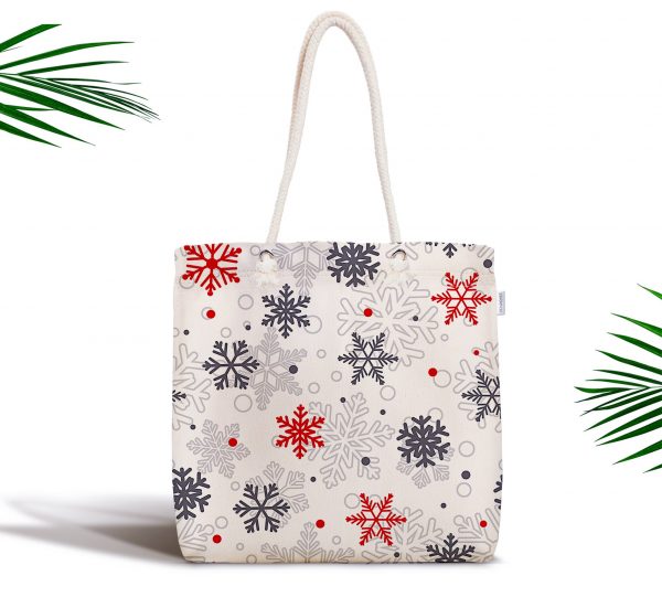 Beyaz Zeminde Kar Taneleri Özel Tasarım Fermuarlı Kumaş Çanta