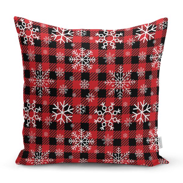 Siyah Kırmızı Ekose Desenli Yılbaşı Temalı Dekoratif Fermuarlı Sandalye Minderi