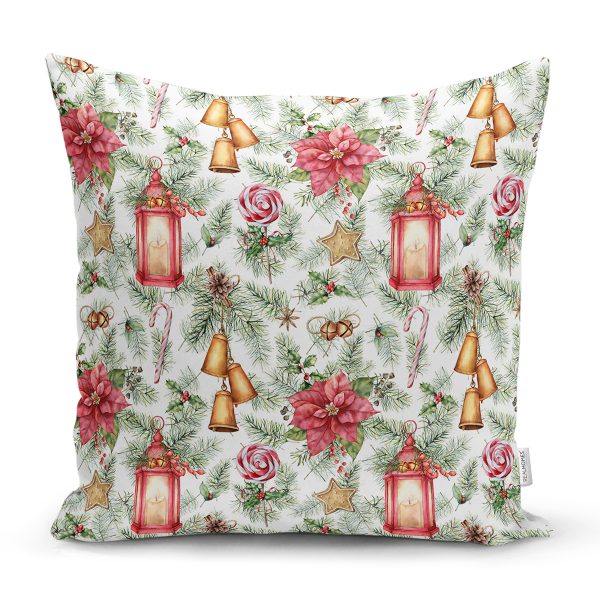 Şamdan Tasarımlı Yılbaşı Konseptli Dijital Baskılı Dekoratif Yastık Kırlent Kılıfı