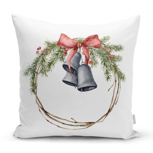 Çanlı Çelenk Tasarımlı Dijital Baskılı Modern Yastık Kırlent Kılıfı