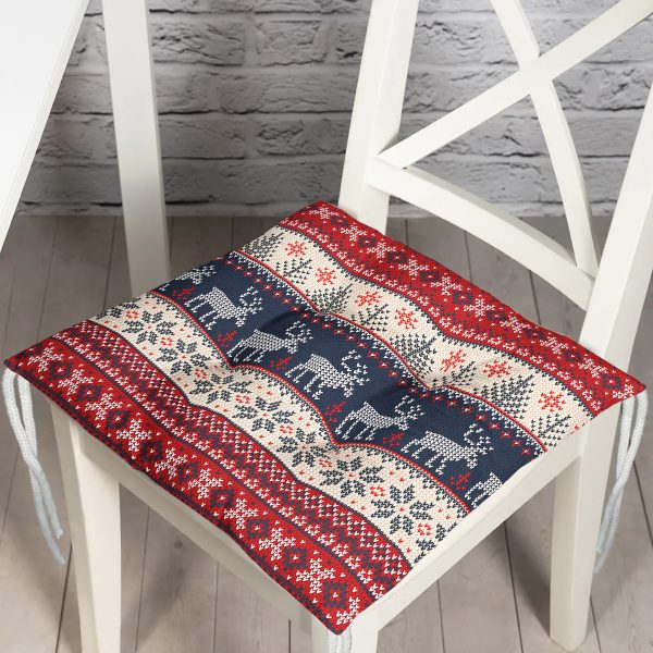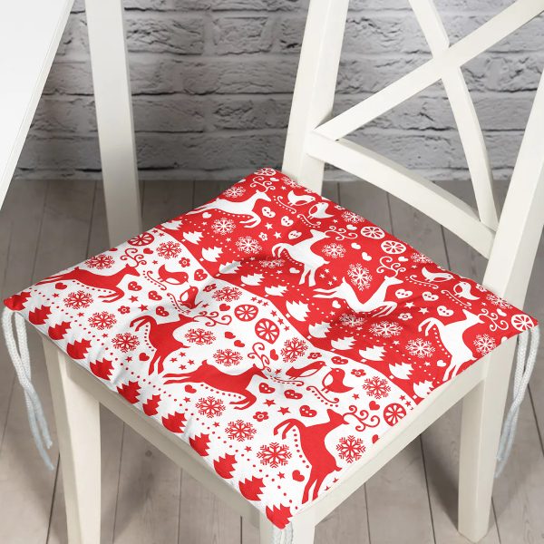 Yılbaşı Geyikleri Motifli Dijital Baskılı Pofuduk Sandalye Minderi