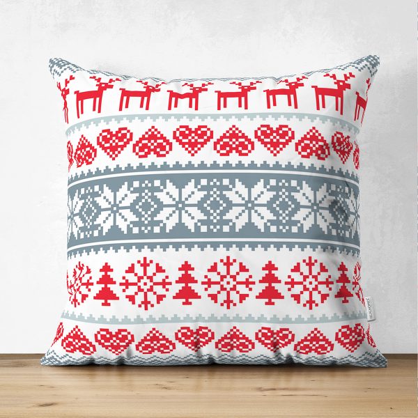 Kırmızı ve Gri Kanaviçe Christmas Temalı Dekoratif Yer Minderi – 70 x 70 cm