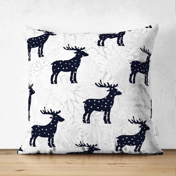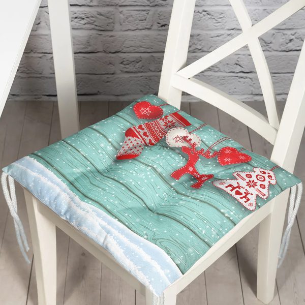 Yılbaşı Geyikleri Motifli Dijital Baskılı Fermuarlı Sandalye Minderi