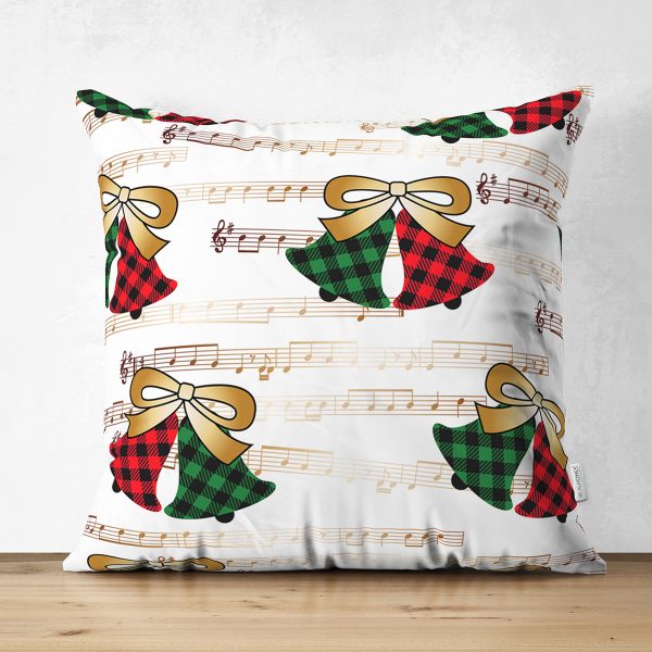 Çift Taraflı Beyaz Zeminli Ekoseli Çan Desenli Dijital Baskılı Modern Süet Yastık Kırlent Kılıfı