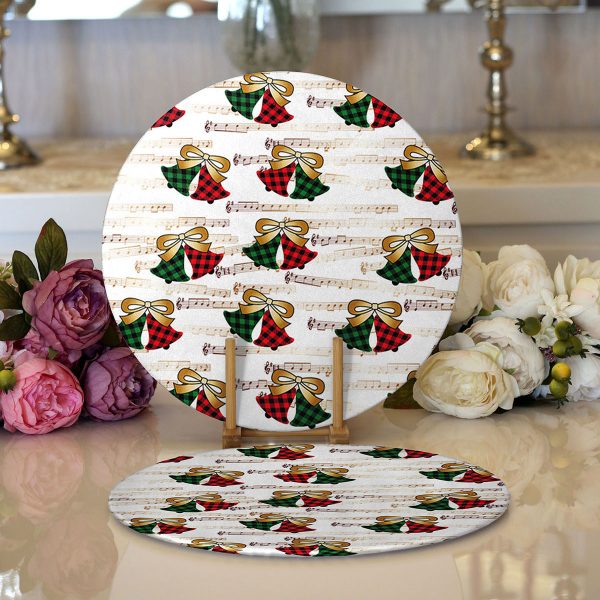 Realhomes Beyaz Zeminli Ekoseli Çan Desenli Dijital Baskılı Modern 2’li Yuvarlak Servis Altlığı – Supla