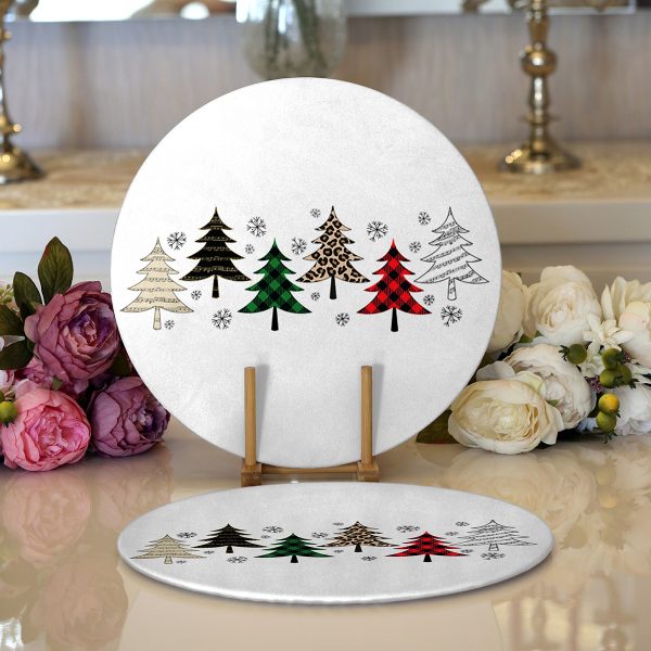 Realhomes Beyaz Zemin Üzerinde Ekoseli Çamağacı Desenli Dijital Baskılı Modern 2’li Yuvarlak Servis Altlığı – Supla