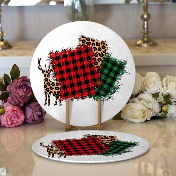 Realhomes Beyaz Zemin Üzerinde Ekose Desenli Geyik Desenli Modern 2’li Yuvarlak Servis Altlığı – Supla
