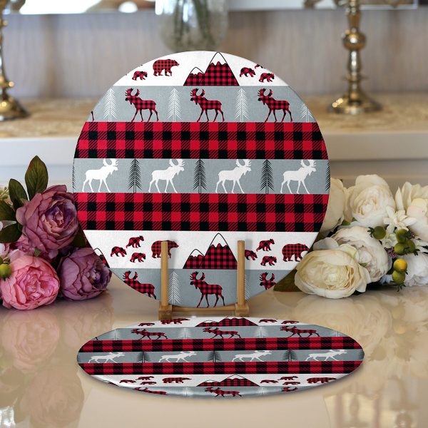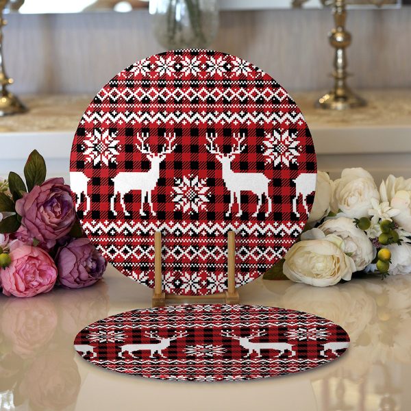 Realhomes Kırmızı Ekose Desenli Geyik Motifli Dijital Baskılı Modern 2’li Yuvarlak Servis Altlığı – Supla