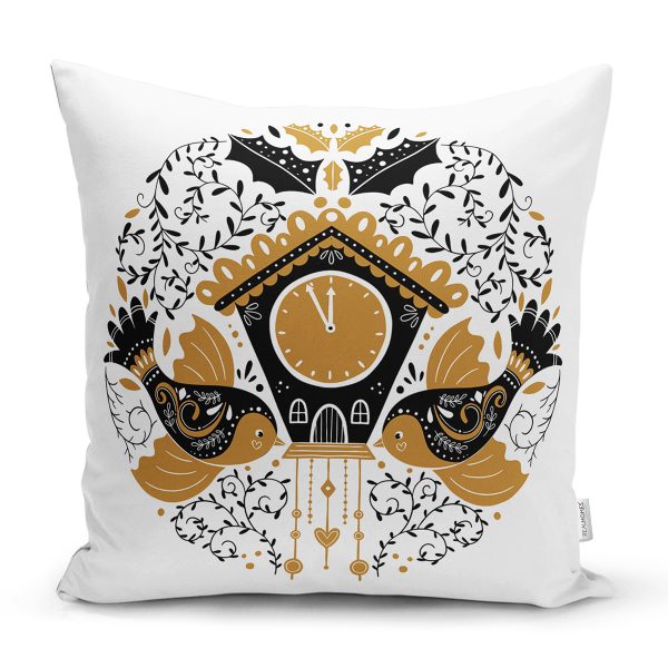 Çini Çizimli Guguklu Saat Motifli Dijital Baskılı Dekoratif Yastık Kırlent Kılıfı