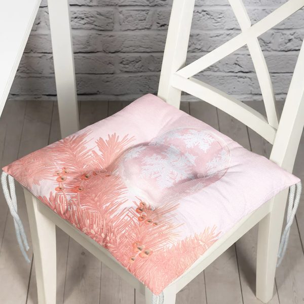 Pembe Zeminli Yılbaşı Konseptli Desenli Pofuduk Sandalye Minderi