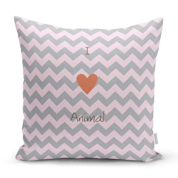 Pembe Gri Zigzag Zeminle I Love Animal Çocuk Odası Yastık Kılıfı