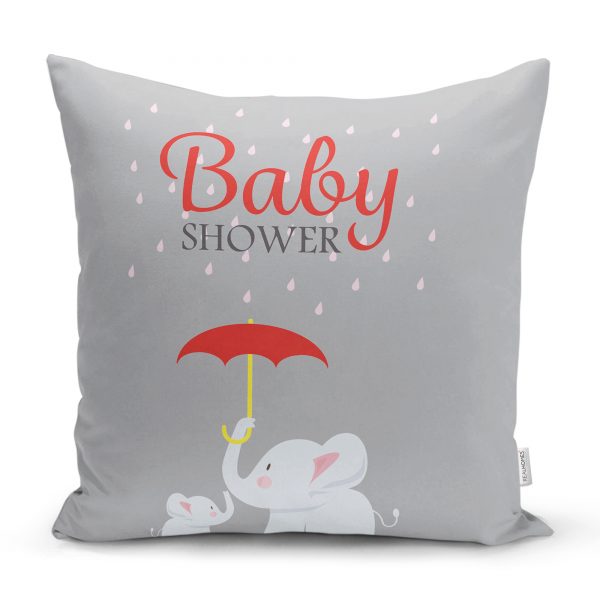 Gri Zeminde Uçan Balonlar ve Fil Desenli Çocuk Odası Yastık Kılıfı