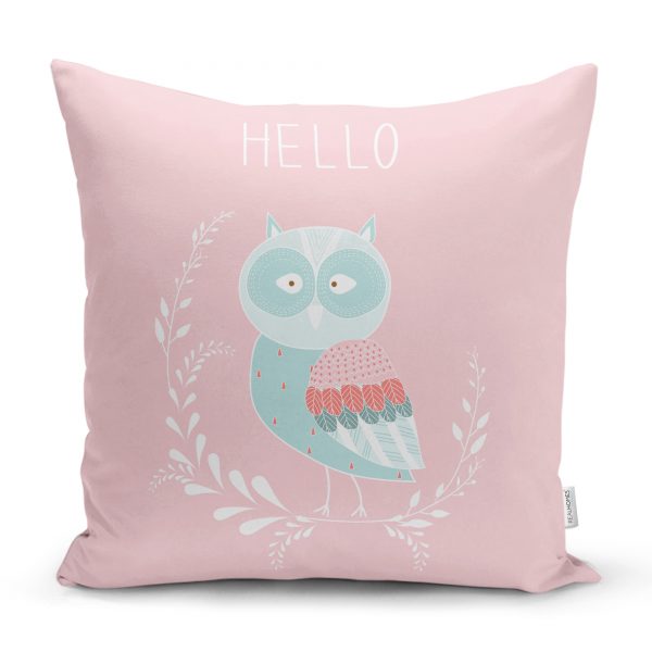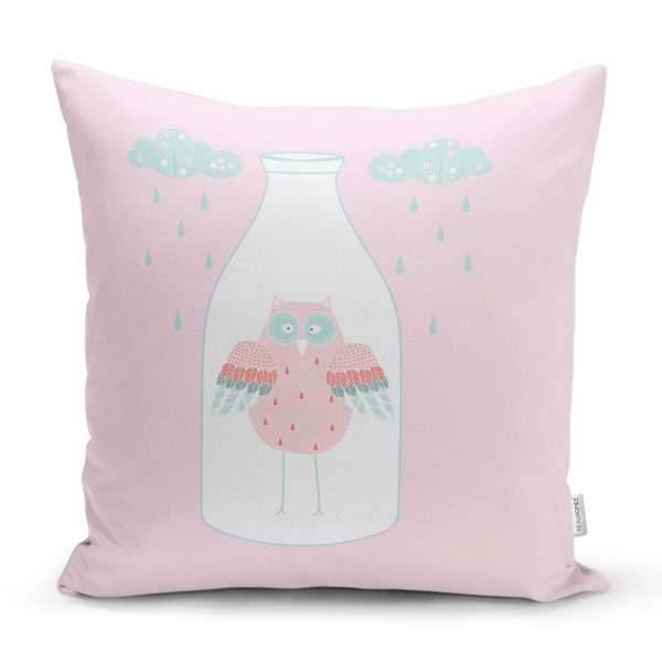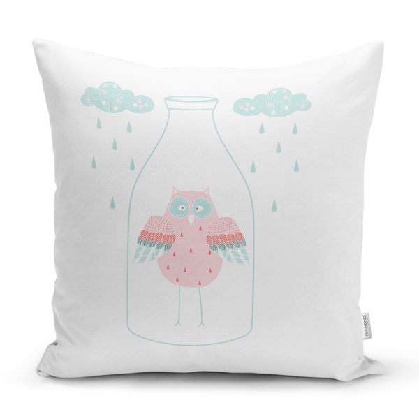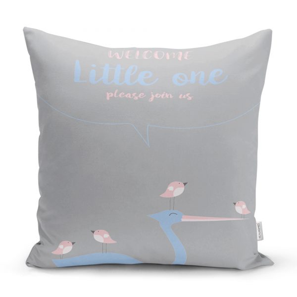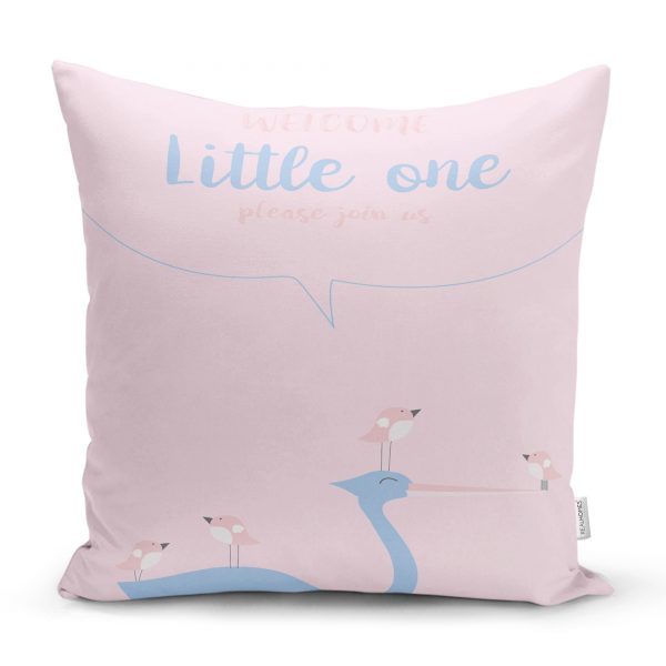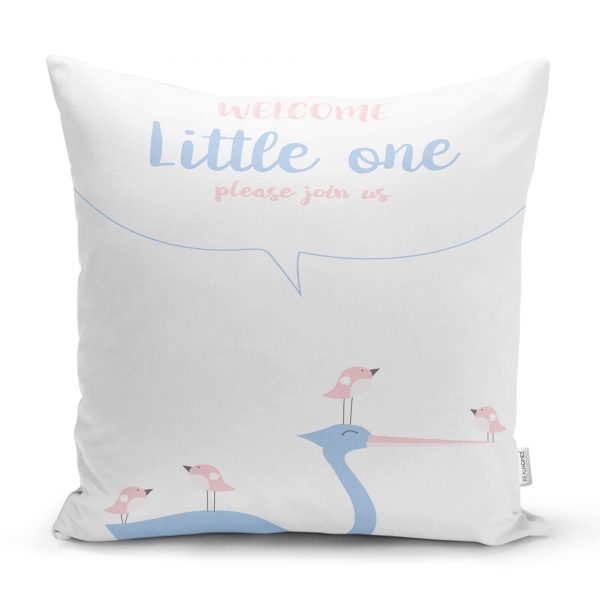 Beyaz Zeminde Leylek Motifli Özel Tasarım Çocuk Odası Yastık Kılıfı